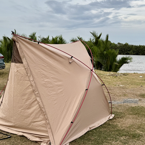 Khi lắp làm lều , có 2 cửa chính, có 2 cửa sổ thoát khí, thông thoáng