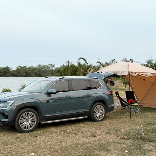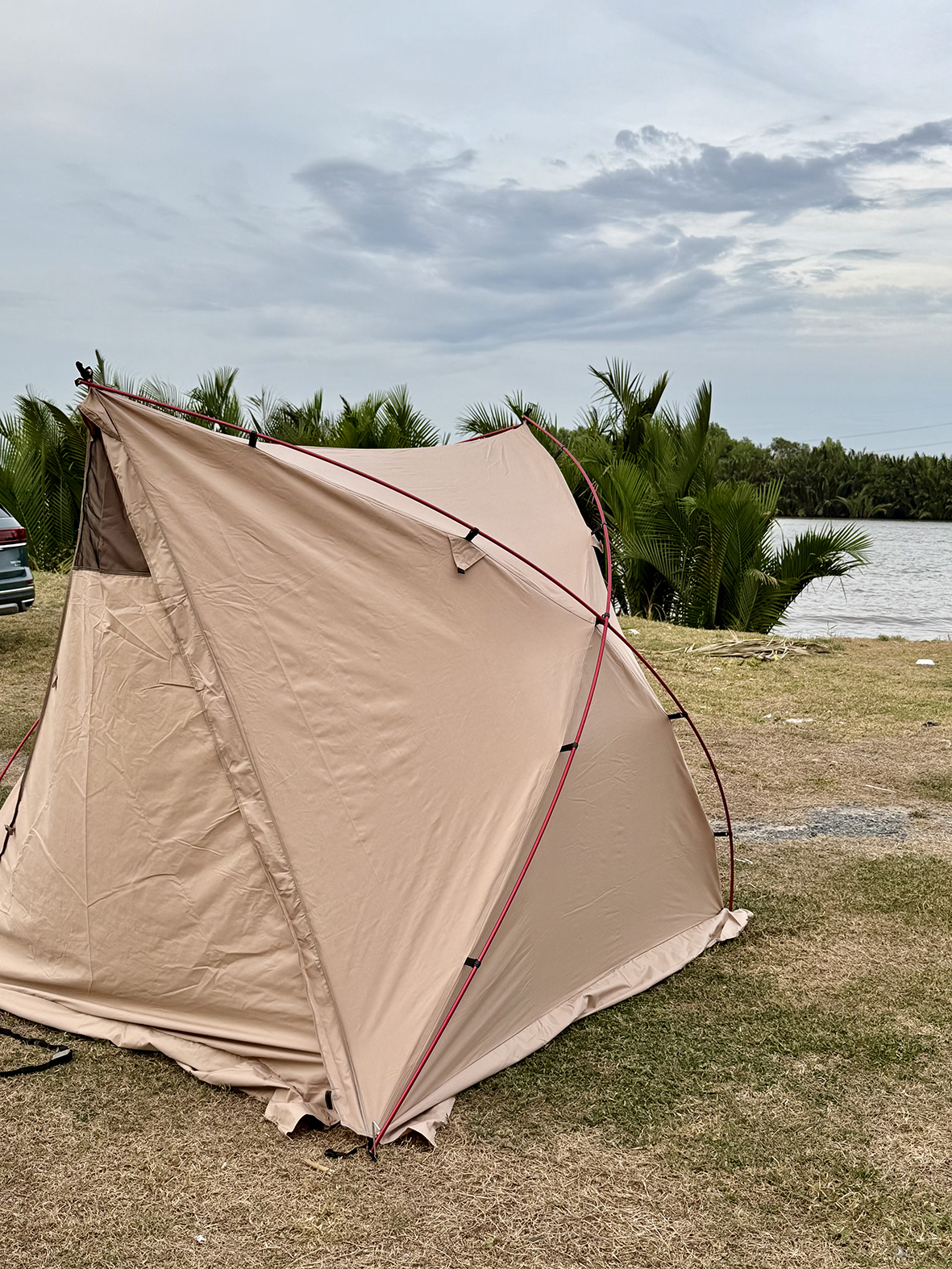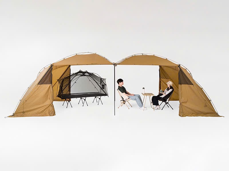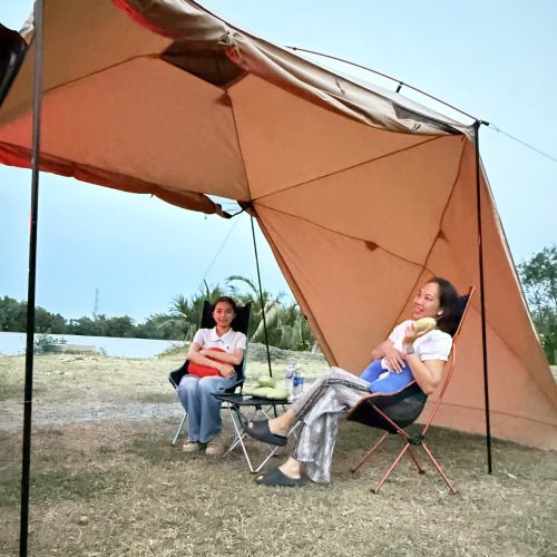 Khi dùng thêm cây chống tarp. có thể tùy biến mở rộng không gian che.
